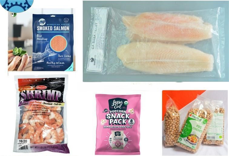 1. Ngành thực phẩm: Hàn mép túi cho các sản phẩm như bánh kẹo, các loại hạt, cà phê, trà, thực phẩm khô.